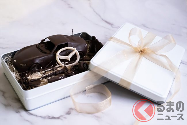 2023年2月14日、マツダはバレンタインデーにあわせて、同社の人気オープンカー「ロードスターRF」をチョコレートで再現し、SNSに投稿しました。