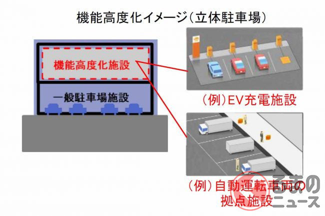 SA・PAについては、機能を高度化した駐車場の整備費用の一部について、高速道路機構から高速道路会社への無利子貸付制度を創設。これによりEV充電や自動運転車両の拠点となるような施設の整備を進めます。