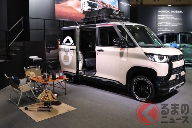 三菱自動車工業(以下、三菱)は、新型軽スーパーハイトワゴン「デリカミニ」の実車を東京オートサロン2023(千葉・幕張メッセ)にて初お披露目しました。