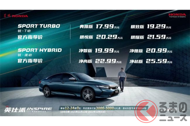 実は中国で復活していたホンダ「インスパイア」
