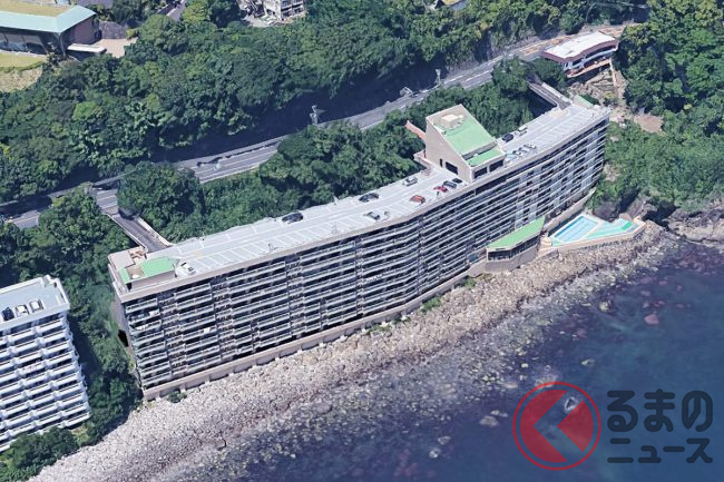 「国道と屋上がつながってる!?」 驚きの構造! 熱海に存在する珍しい建物とは