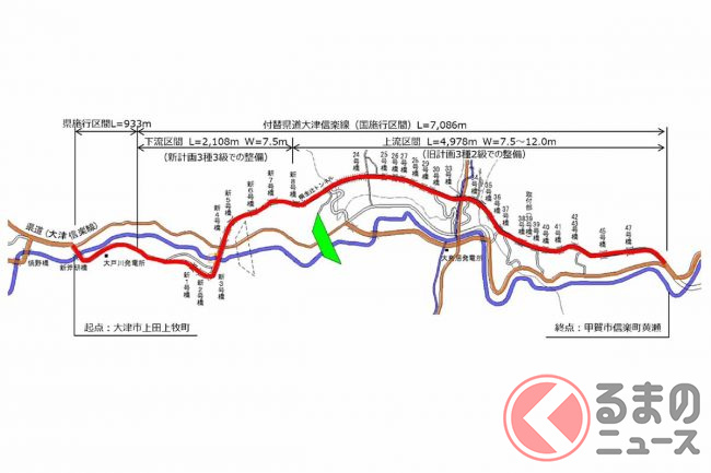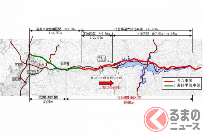 国土交通省近畿地方整備局は2023年2月15日、大戸川ダムの建設に伴い水没する滋賀県道16号大津信楽線の付替道路が、3月25日に開通すると発表しました。