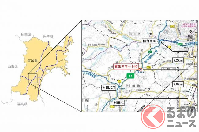 宮城県と村田町(宮城県)、NEXCO東日本東北支社は2023年2月17日、共同で整備を進めてきた東北道の菅生スマートICが完成し、3月25日15時に開通すると発表しました。
