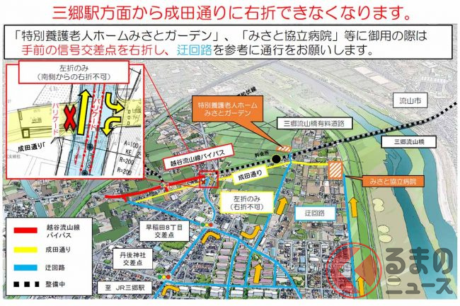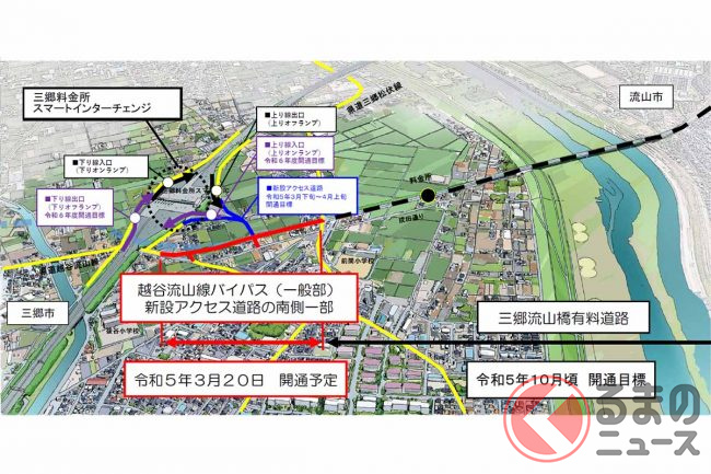 埼玉県が三郷市内で整備を進めてきた県道越谷流山線バイパスが、2023年3月20日に開通します。