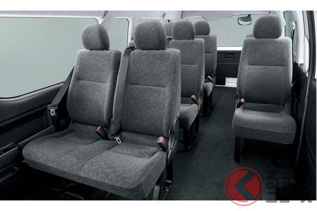 ハイエースのラインナップで用意される中型免許が必要な14人乗りの「ハイエースコミューター」から5列目シートを取り除いたものとなり、1列分はラゲッジルームとして広く使うことができます。