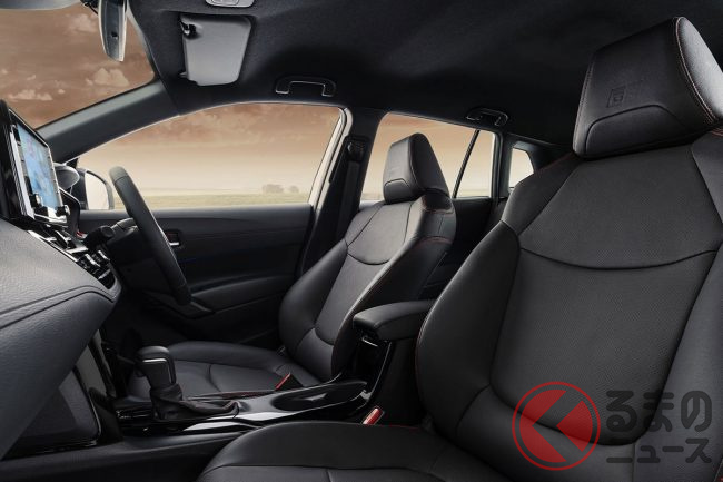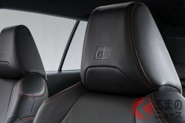 インテリアには、ダッシュボードの左右エアコンダクトを繋ぐ赤いアクセント加飾に加え、GRロゴをエンボス加工したブラックレザーシート、ステアリングやシートなどインテリアの各部には赤いステッチが施されています。
