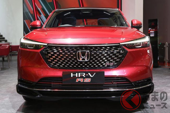 グリルがド派手! ホンダのギラ顔「新型SUV」登場! 鮮烈レッドの新型「HR-V」モノクロームシリーズ尼で初公開