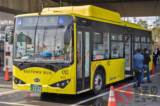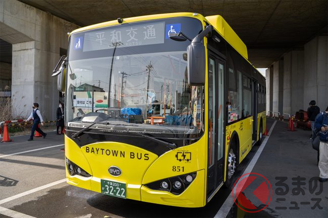 ![国産EVバスの導入が進まない中で、中国・BYD製バスは国内で続々と採用例が増えています[写真は平和交通バス(千葉市)のBYD「K8」/撮影:加藤ヒロト]](https://kuruma-news.jp/wp-content/uploads/2023/02/20230224_BYD_K8_EV_BUS_001.jpg?v=1677204778)