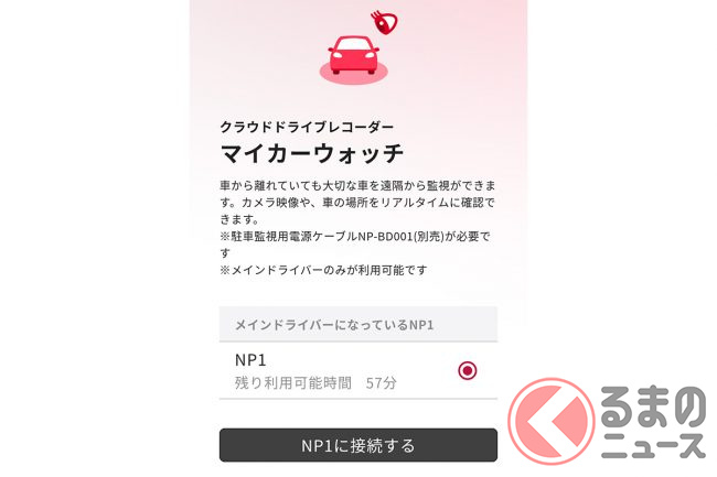 2022年12月に実装された、「マイカーウォッチ(遠隔監視)」機能も体験することができました。これはNP1に搭載されているクラウド型ドライブレコーダーに、3回目のOTAで新たに追加された機能です。