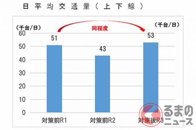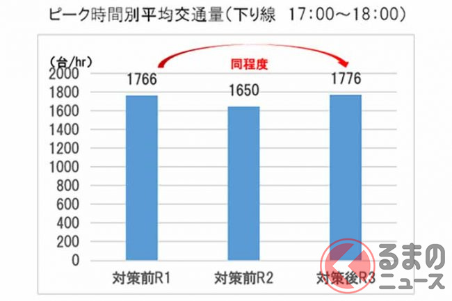 その結果、運用変更後の2021年7月~2022年6月の1年間は、日平均やピーク時間の交通量がコロナ禍前と概ね同水準でしたが、交通集中による渋滞は発生していないといいます。