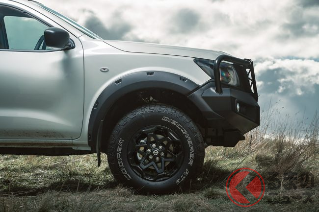 「PRO-4X」グレードは、ブラックアウトされたエンブレムやブラックグリル、オレンジをアクセントとしたフロントバンパーを装備し、タフなイメージを向上させたほか、17インチブラックホイールとオールテレーンタイヤを搭載し、悪路走破性も高めています。