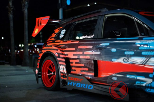 このラッピングに付いてLili Melikian氏は、「グラフィックはハイブリッド パワートレインにインスパイアされており、ホンダ ハイブリッド ブルーからホンダ レーシング レッドに放射状に広がり、ドライブトレインの二重性を象徴しています」とコメントしています。