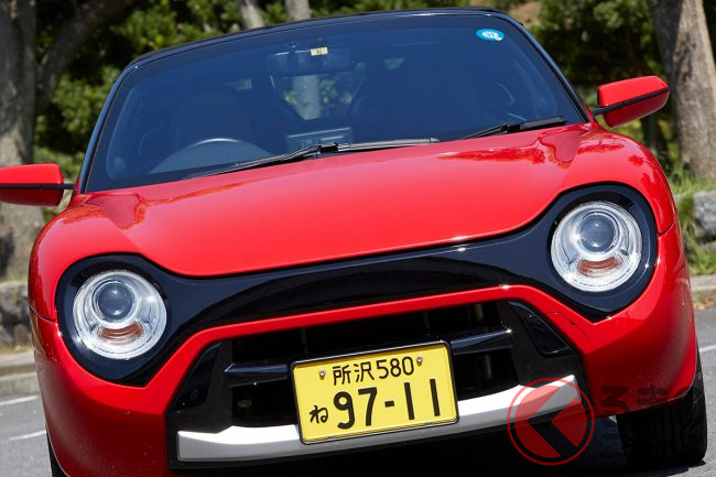 見た目は、小さく低い車体のフロントマスクに大きなヘッドライトから構成される可愛らしいフェイスデザインに加えて、リアは少し厚めの造形となりスーパーカーを彷彿とさせるスポーティで重厚感あるイメージです。