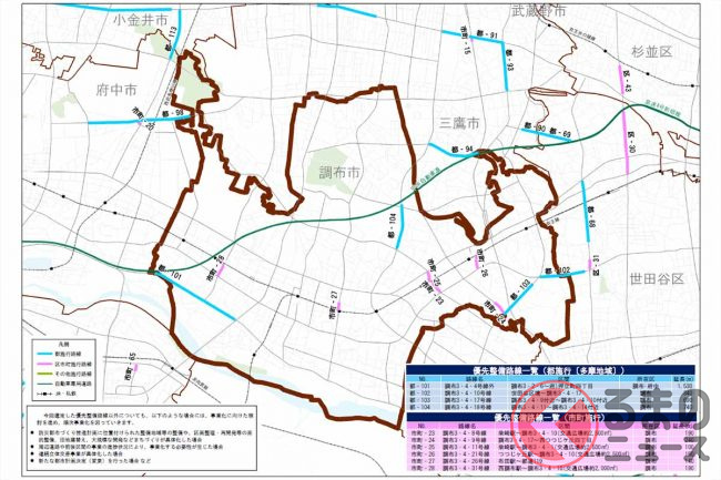 東京都が、調布市内で調布3・4・17号狛江仙川線(都道114号武蔵野狛江線)の拡幅事業に着手します。