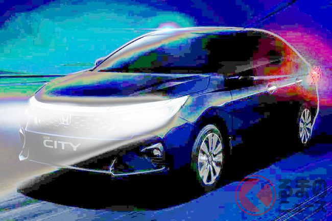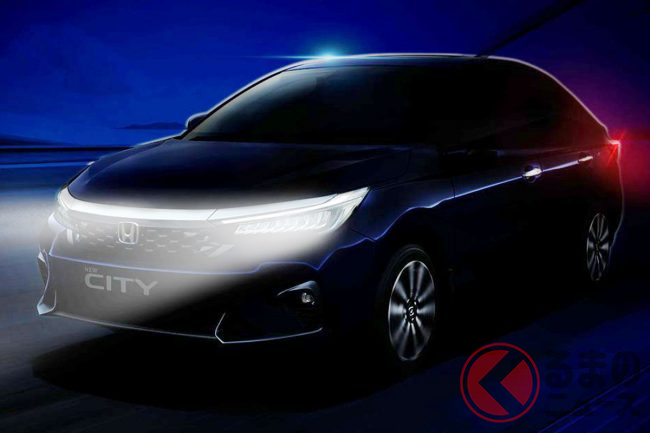 ホンダが新型「シティ」チラ見せ! MT搭載ありか!?「最高にスポーティ」宣言に期待高まる「新コンパクトセダン」印で初公開へ