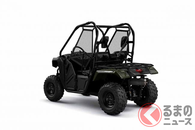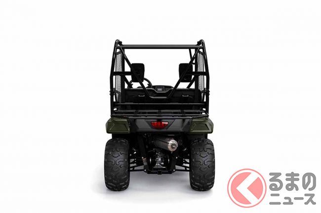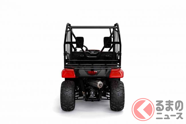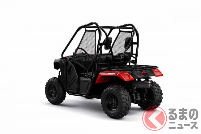 450ポンド(約200kg)のリアラックや1000ポンド(約450kg)の牽引能力は、農作業などにも役立ちます。色はアベンジャーレッドとブラックフォレストグリーンの2種類。米国での発売は3月で、価格は8999ドル(約123万円)です。