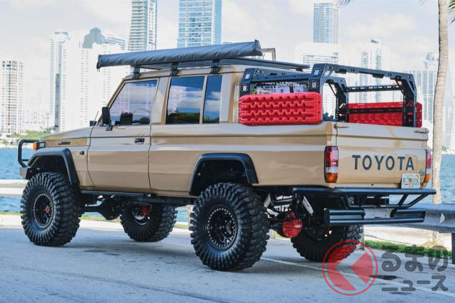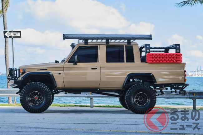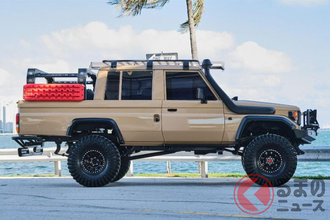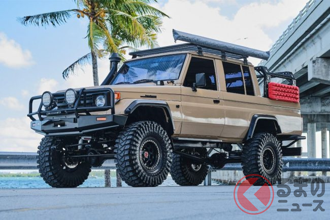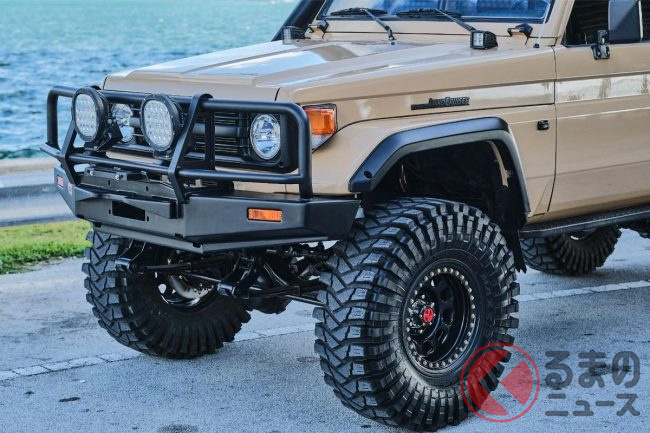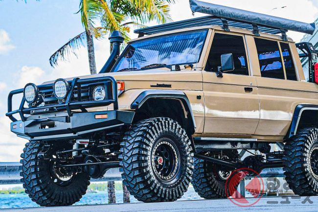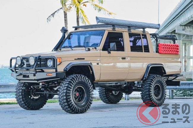 雰囲気おかしい魔改造「ランクル」!? 車高アゲ&車体延長&後部座席追加!? サンドベージュがオシャレすぎるトヨタ「HJ75」米で高額落札