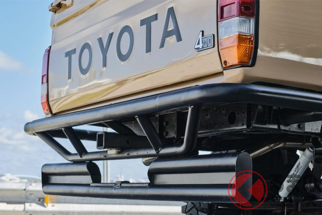 そんなHJ75を無理やりダブルキャブ化、5名乗車が可能になるも後部ドアは設けられておらず、フロントドアからしか後部座席にアクセスできません。これに伴いボディも明らかに延長されています。