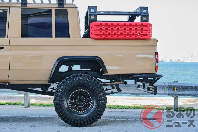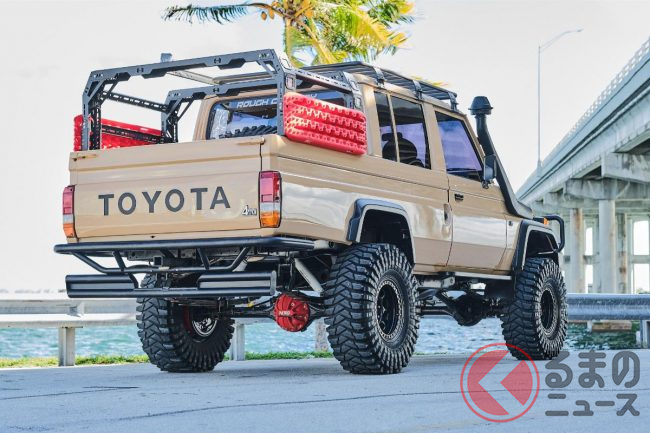 2022年2月、オークションサイト「Cars and Bids」に、タフな改造を施したトヨタ「ランドクルーザー」のピックアップトラックが登場しました。本来は2名乗車のシングルキャブ「HJ75」を、5人乗りに無理やり改造した個体のようです。