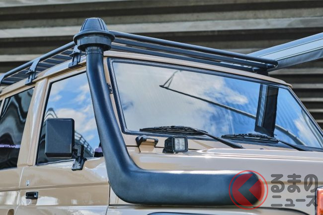 パワートレインには、最大出力は約108馬力・最大トルクは約24.4kgf-mを発揮する4.0リッター直列6気筒ディーゼルエンジンを採用。これに4速MTを組み合わせ4輪を駆動します。さらに排気システムにも手が入っているほか、シュノーケルインテークも増設されています。