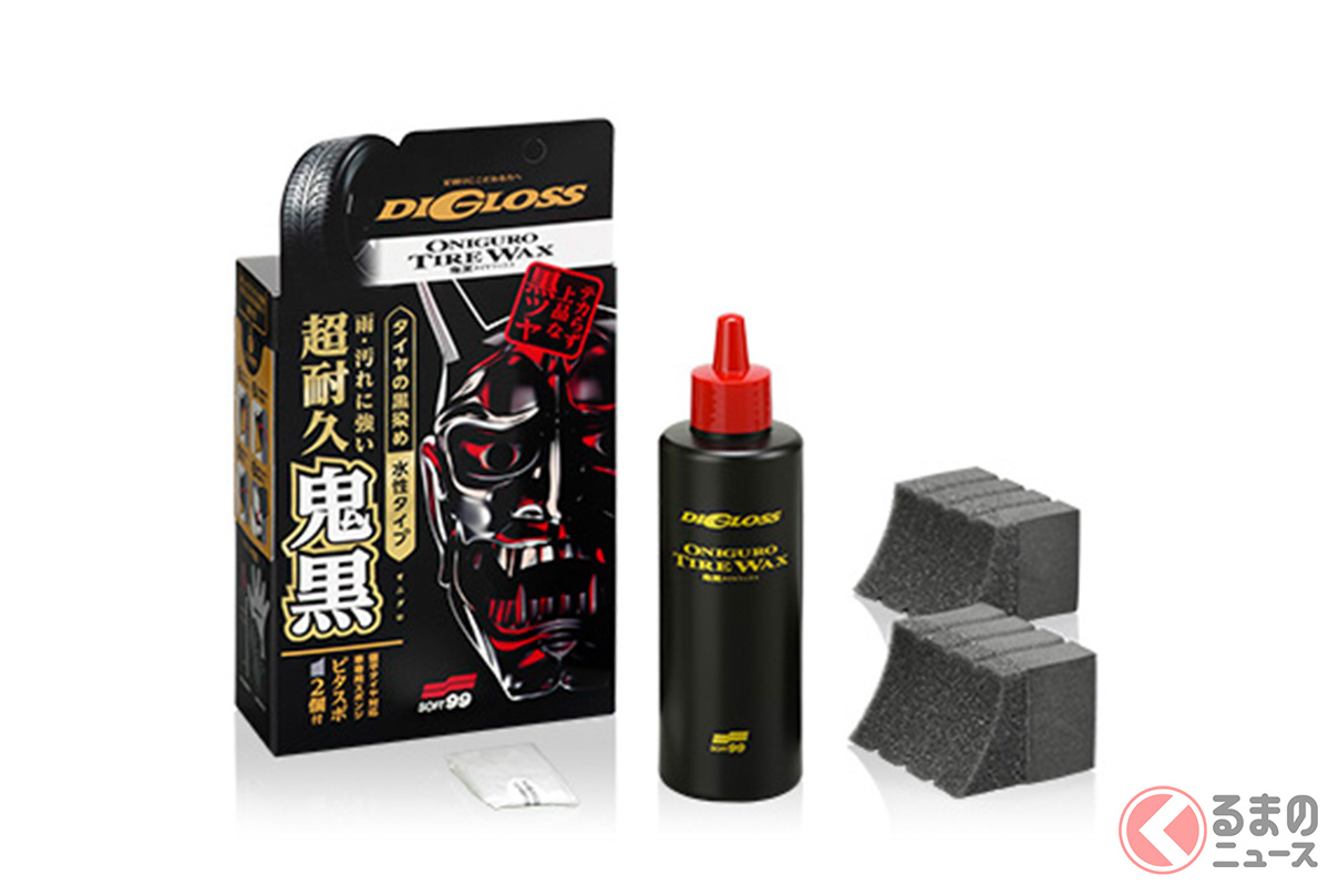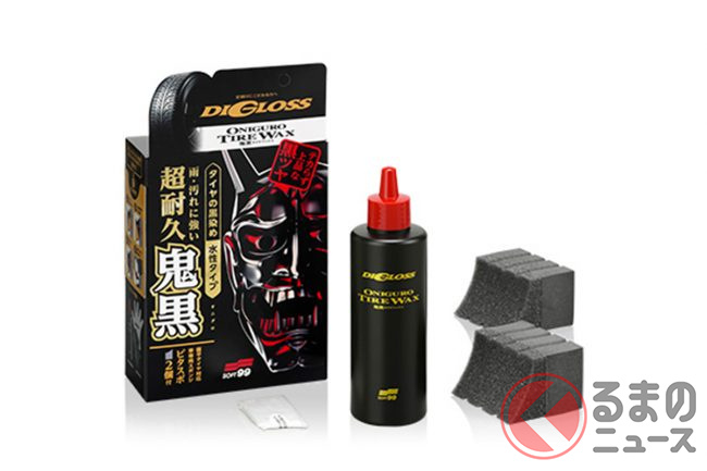 「タイヤを“鬼”長く“黒々”とさせる」という「ディグロス 鬼黒 タイヤワックス」は、カーボンブラックと植物由来ワックスであるカルナバを配合したタイヤワックスで、黒ツヤが引き立つ見た目の美しさはもちろん、雨や紫外線、汚れなどからタイヤを守る効果があるといいます。