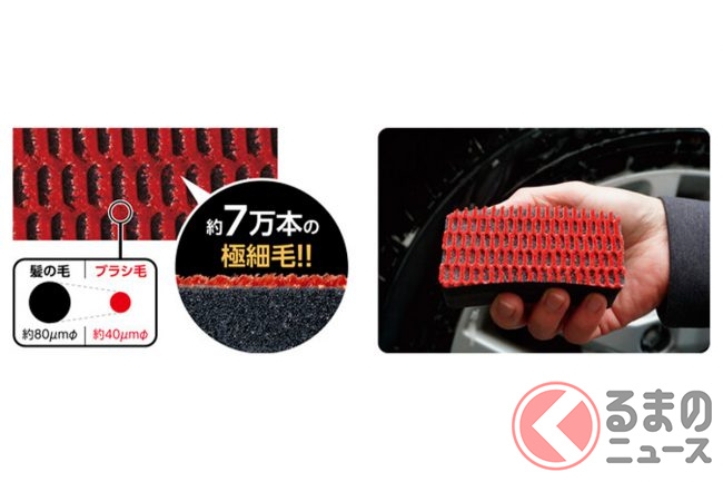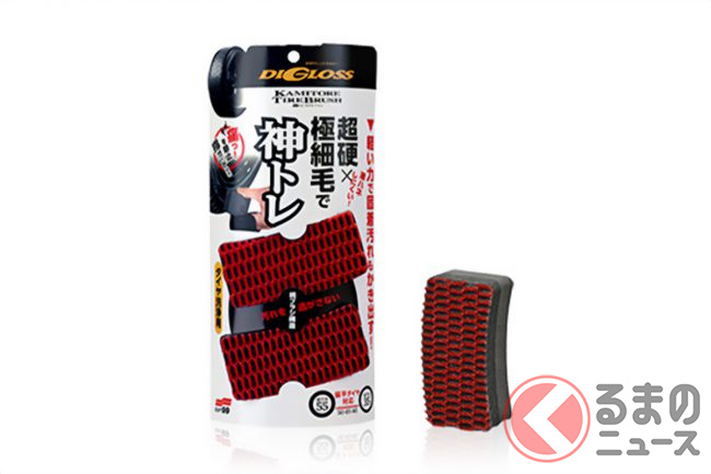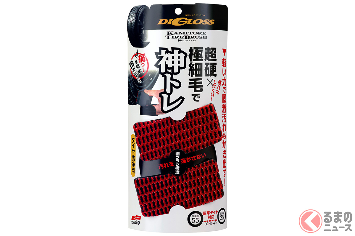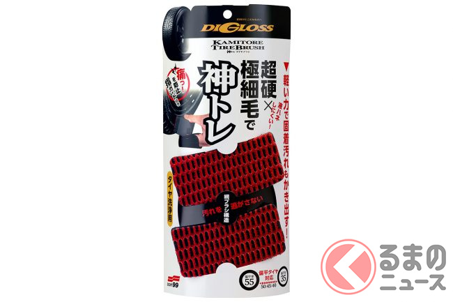 「ディグロス 神トレ タイヤブラシ」は、タイヤの汚れ落としに特化したブラシです。網状に配された、髪の毛の約半分の細さという約7万本の微細な超硬毛がタイヤの凹凸部に入り込んで、固着した汚れも軽い力でかき出せるといいます。。