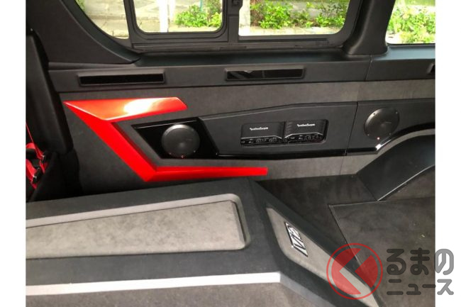 「ハイエースは箱型のデザインであるため、スーパーカーのような流れるボディラインを意識したデザインを取り入れるのが難しかったのと同時に、こだわった点です。