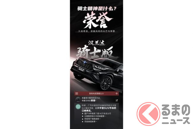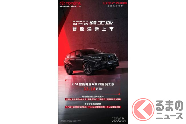 2023年3月4日、トヨタの中国における合弁企業「広汽トヨタ」は、特別仕様車となる新型「ハイランダー 騎士版(ナイトエディション)」を同社の公式SNSで公開しました。