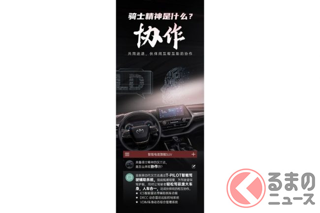 トヨタの中国における合弁企業「広汽トヨタ」は、特別仕様車となる新型「ハイランダー 騎士版(ナイトエディション)」を同社の公式SNSで公開しました。内外装共に真っ黒の“黒強調”仕様のようです。