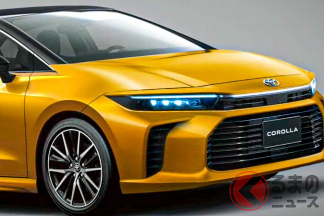 トヨタ“次期型”「カローラ」は“最新トヨタ顔”に!? “ハンマーヘッド”モチーフのイケ顔「セダン」を大胆予想したCGがスゴイ