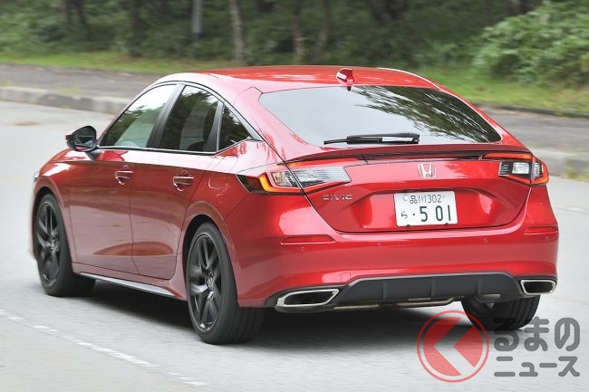 ホンダ「シビック」は、通常の1.5リッターガソリンターボ車に6速MTを用意しています。2021年に登場した現行モデルでは、当初は20代の購入比率が高いと発表されていたのですが、その人気は今でも健在。20代が約3割、50代が約3割となっており、比較的若者の購入比率が高い車種といえます。