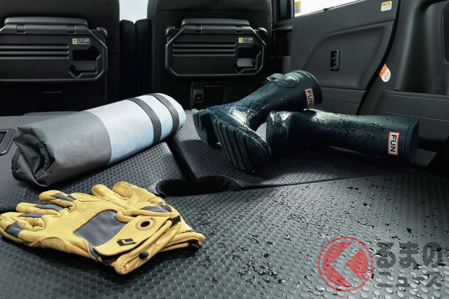 室内も荷室を中心にアレンジされ、アウトドアでの使い勝手に考慮した造りとなっていました。