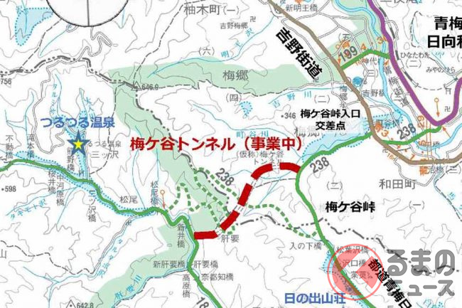 青梅~五日市の新ルート「梅ヶ谷トンネル」いつ開通? つるつる温泉も利便性アップ