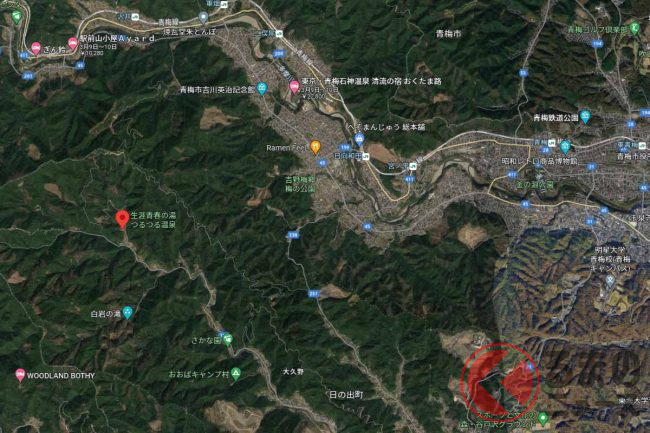 青梅市側は、日向和田駅や吉野梅郷から、日の出町役場や武蔵五日市駅方面に抜ける都道238号・251号とつながります。