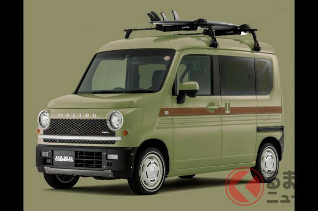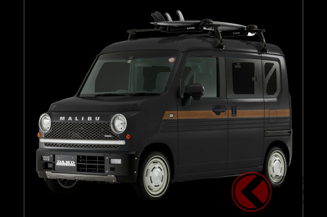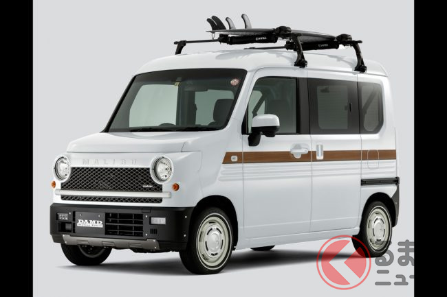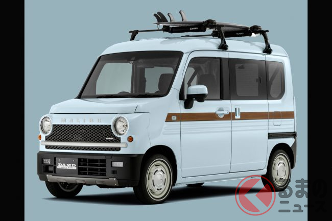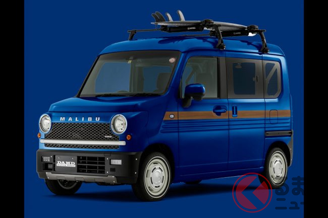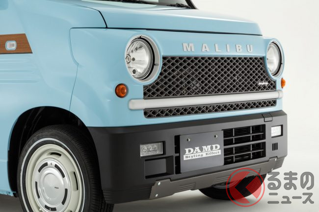 人気の「車中泊」軽バン「N-VAN」をレトロ顔に“顔面整形”!? “懐かしい”ウッディなラインがオシャすぎ! DAMD「マリブ」とは