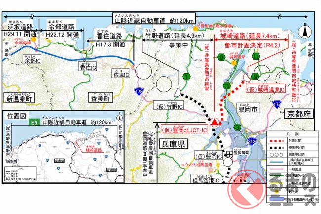 城崎温泉がより近く! 国道178号「城崎道路」事業化へ 将来は京都・鳥取と連絡 しかし建設は「技術力」が必要?