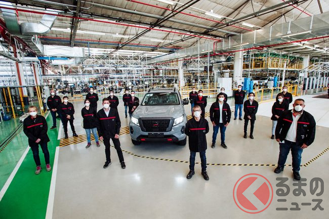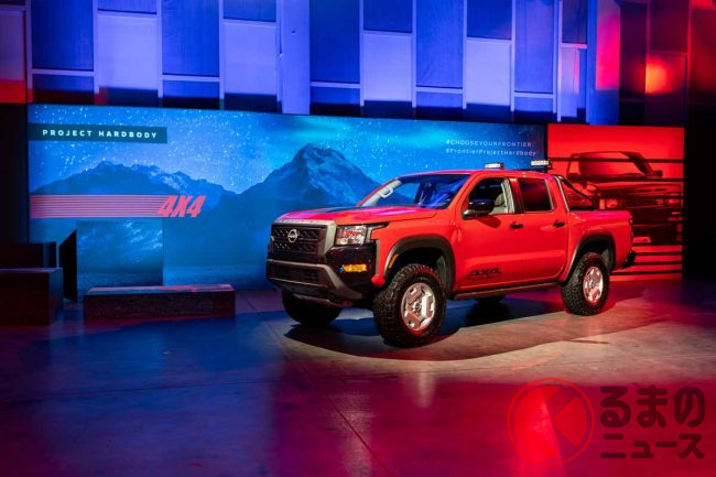 トヨタ「ランクル」より巨大! 全長5m超の大型「日産車」を展示! 赤「NISSAN」ロゴ採用の新型「フロンティア」が伯で登場