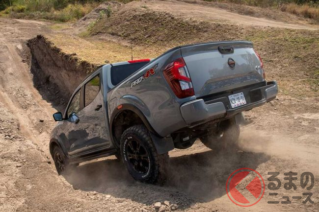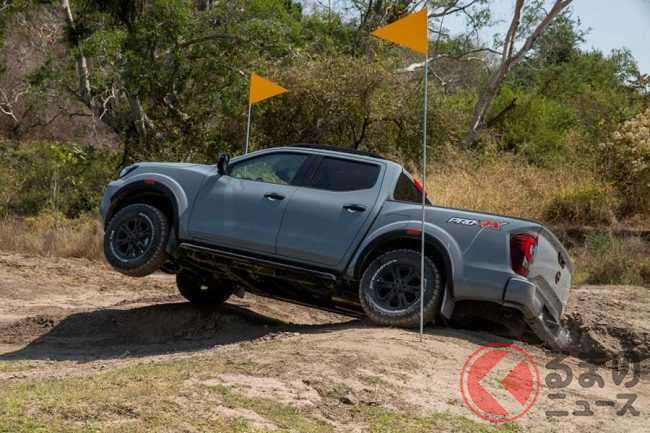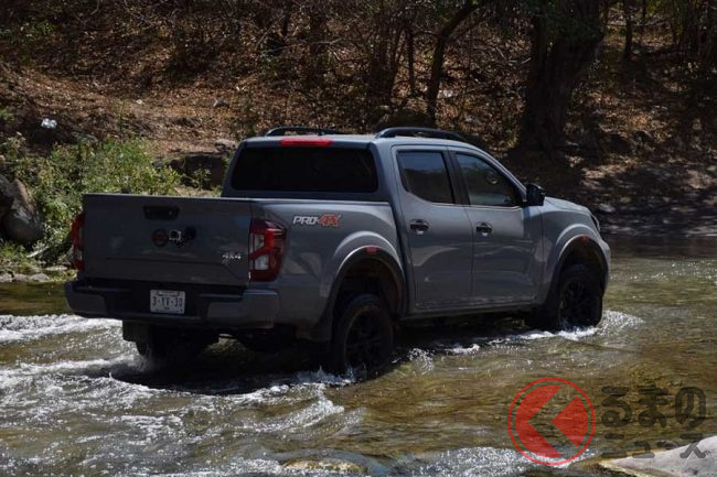 新型フロンティアはオフロード性能においてもクラス最高レベルの機能を備えており、31.2度から32度のアプローチアングルと、26度のデパーチャーアングル、249mmの最低地上高を誇ります。