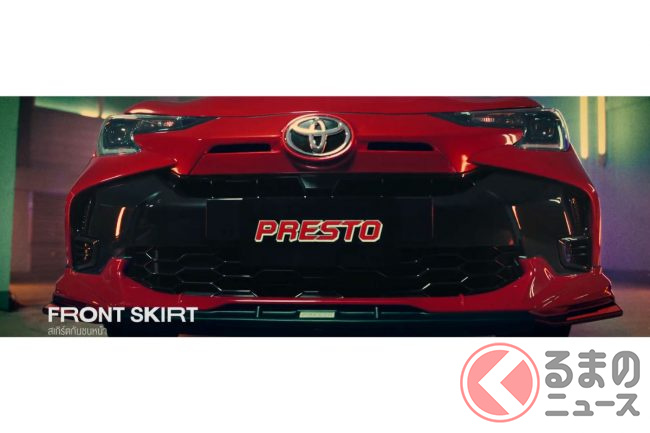 2023年3月9日、トヨタのタイ法人は、改良型となるトヨタ新型「ヤリス」を発表・発売しましたが、発表と同時にフロントバンパーなどエアロパーツが異なるルッソ、キアロ、プレストの3種のタイプも発表しています。このうちプレストは、ド派手なエアロで武装したスポーティなモデルのようです。