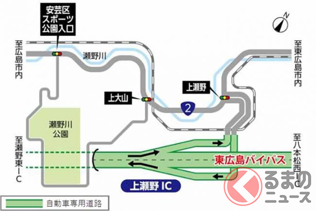さらに、広島高速が通行止めや渋滞だった時の、広島市街と山陽道(高屋JCT・IC、西条IC、志和IC)を結ぶ新たなルートにもなります。