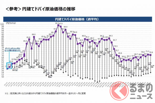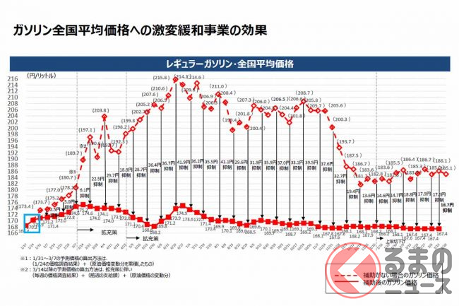 ガソリン価格の高騰を受け、政府は石油元売り企業に補助金を出す価格抑制策を実施。ガソリン、軽油、灯油、重油を対象に2022年1月から1リットルあたり5円、3月から25円、4月から35円を上限に支給しており、さらにそれでもガソリン1リットルの平均価格が170円(4月25日週以降は168円程度)を超過したら、その半分を支援すると発表しています。