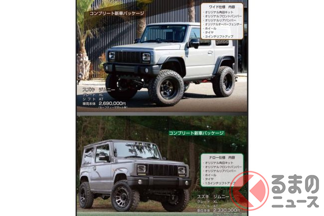 タフさを感じさせつつ、レトロなカワイさを合わせ持った「ジムニー XJスタイル」。車両まで含めたコンプリートカーの価格は、ワイドモデルが269万円、ナローモデルが233万円(どちらもジムニー「XL」・AT仕様)とアナウンスされています。