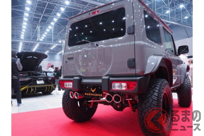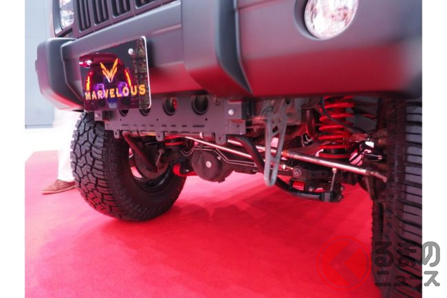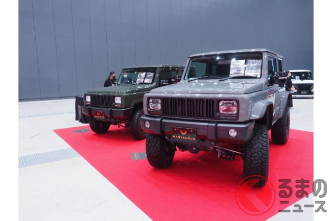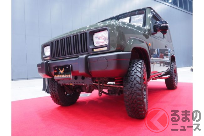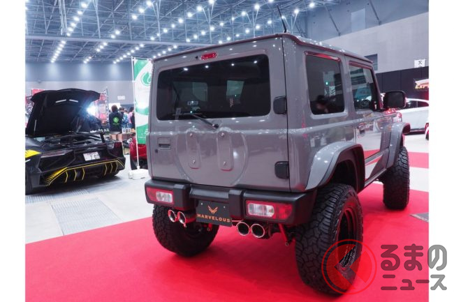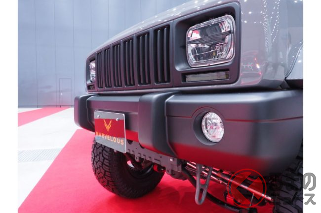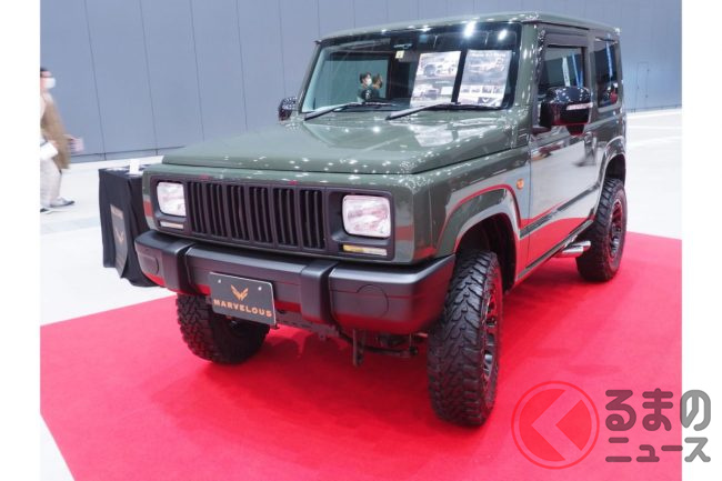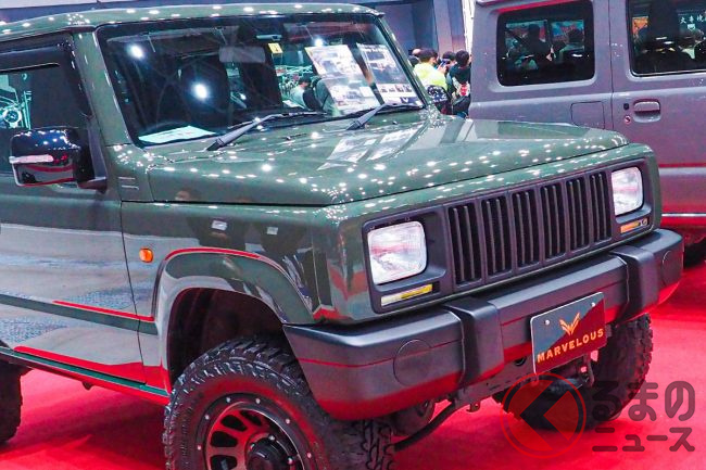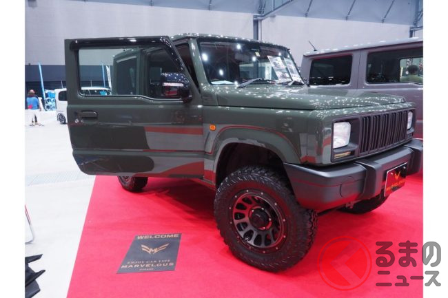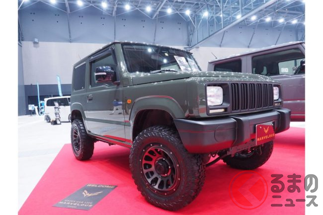 2023年3月11・12日に行われたカスタムカーイベント「名古屋オートフェスティバル2023」で、MARVELOUが出展したジープ風スズキ「ジムニー」が注目を集めていました。どのようなクルマなのでしょうか