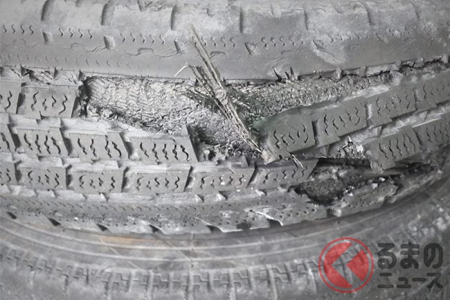 修理できるのは、パンクの原因がタイヤの接地面、つまり地面と接する部分に釘やネジなどが刺さった程度の軽度な損傷で、タイヤの側面に穴が開いた場合のほか、4mm以上の傷や複数箇所の傷がある場合には修理ができません。