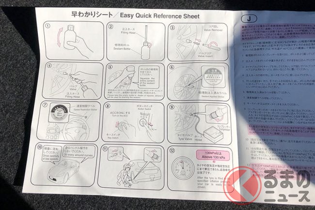 クルマがパンクした時のために、スペアタイヤではなくパンク応急修理キットが備わっているクルマがあります。