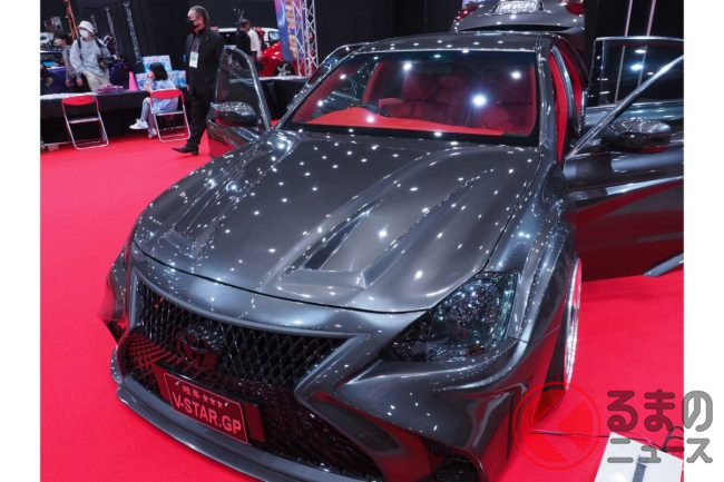 「名古屋オートフェスティバル2023」では、多数のカスタムカーが登場しましたが、なかでも、V-STARが展示した“レクサス”のようなド派手なクラウンが目を引いていました。どのようなクルマなのでしょうか。