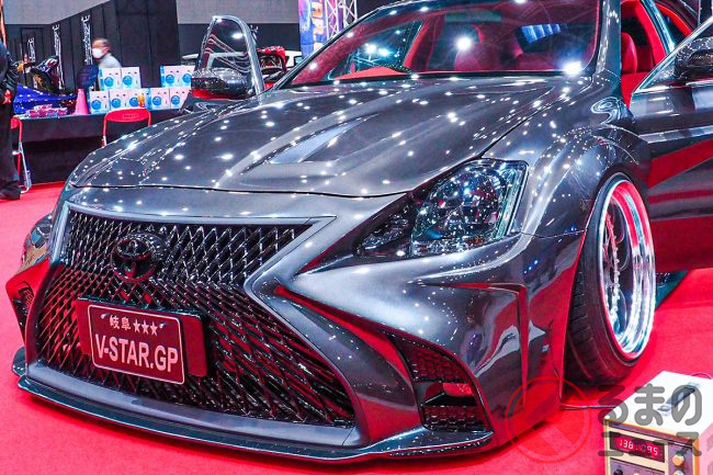 その中でもV-STARが展示した、レクサスさながらの豪華なグリルが特徴的な激しいカスタムを施した「クラウン」が、会場でも人気を集めていました。