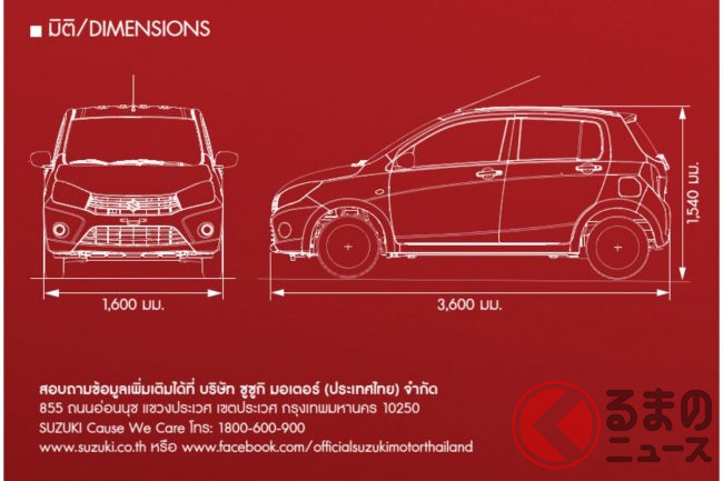 タイで展開されるセレリオのボディサイズは、全長3600mm×全幅1600mm×全高1540mmと、日本で販売されているクルマで言えばトヨタ「パッソ」ほどのサイズ感で、タイで展開されるスズキのコンパクトカーでは最小・最安のエントリーモデルの位置づけです。