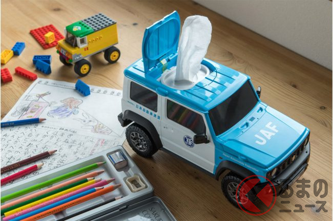 クルマにかかわる雑貨を企画・販売しているフェイスは、ジムニーの形のウェットティッシュケースを2023年2月6日に発売しました。