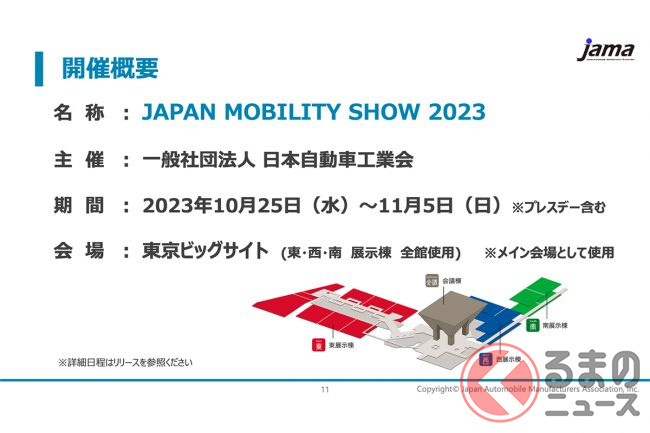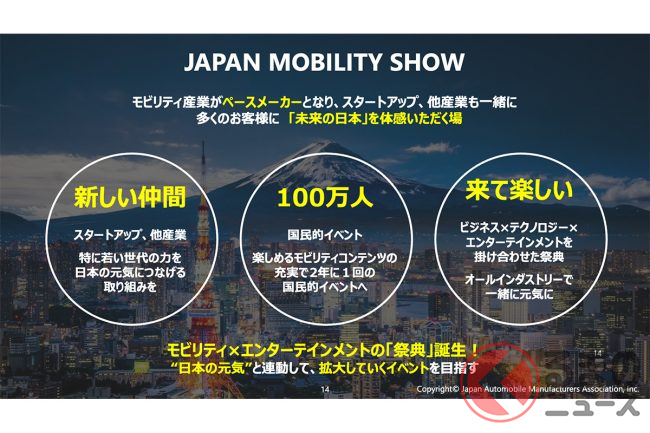 ジャパン モビリティショー 2023では、その名の通り日本における全産業を巻き込み、入場者数は100万人を想定。